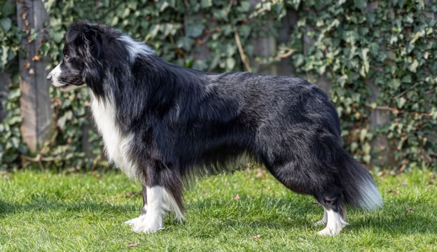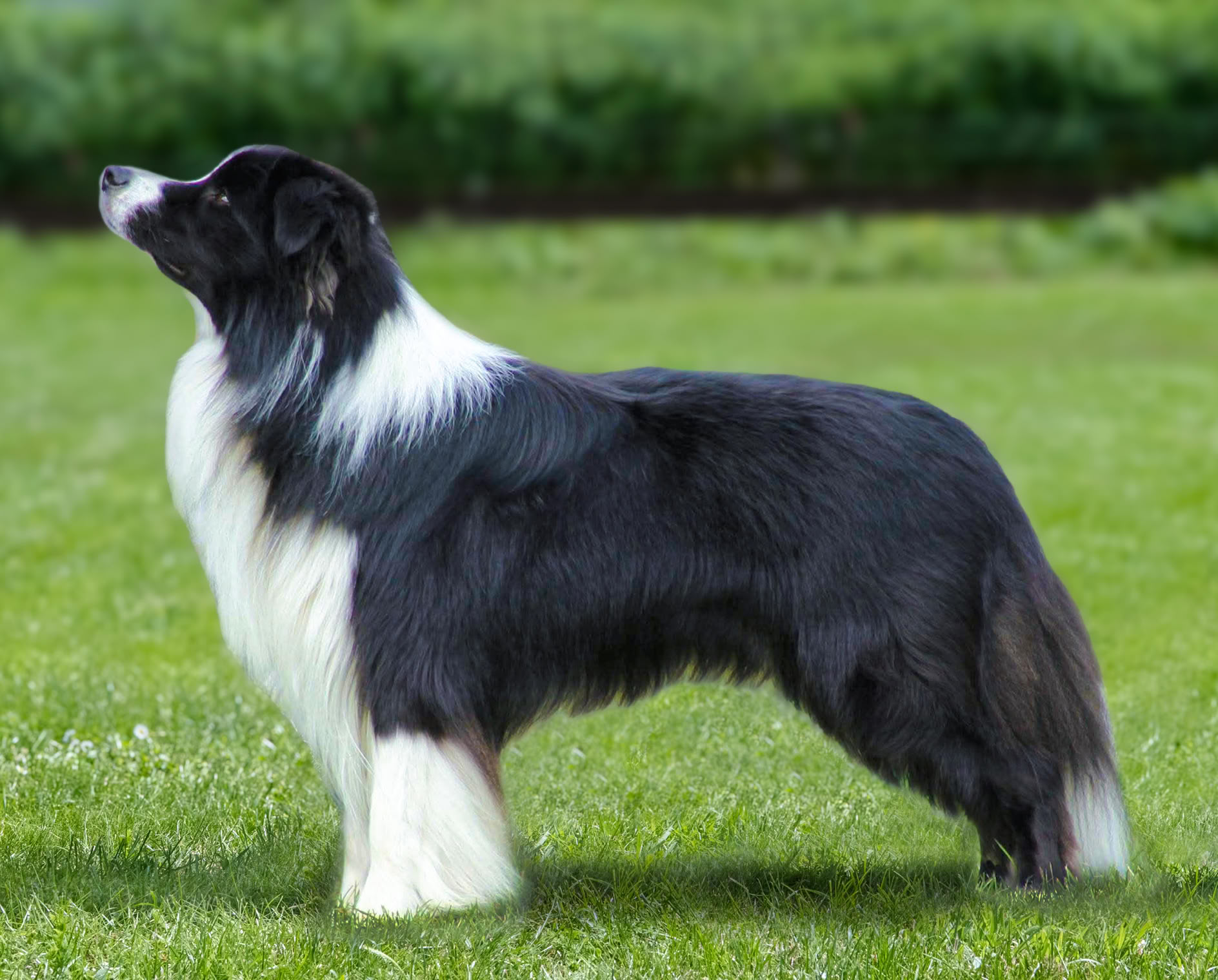 Der Border Collie ist das Ergebnis jahrhundertelanger Zucht als herausragender Arbeitshund. Er ist ein mittelgroßer, athletischer und wohlproportionierter Hund, der Eleganz mit Ausdauer und Kraft verbindet. Sein wetterfestes Fell und sein wacher, intelligenter Blick unterstreichen seine Eignung für die Hütearbeit.